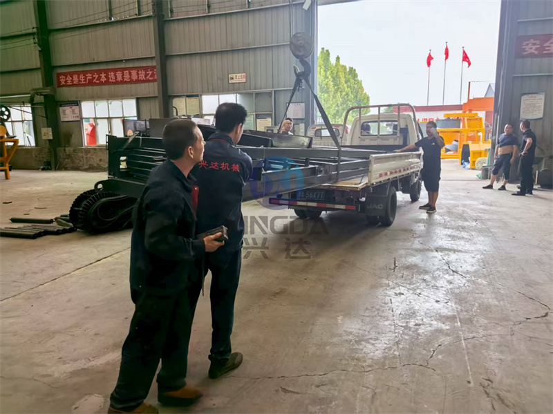 一車準(zhǔn)備發(fā)往南充的有機(jī)肥設(shè)備皮帶輸送機(jī)正在裝車中